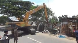 Satpol PP Kabupaten Bekasi Menertibkan Bangunan Liar Di Kalimalang