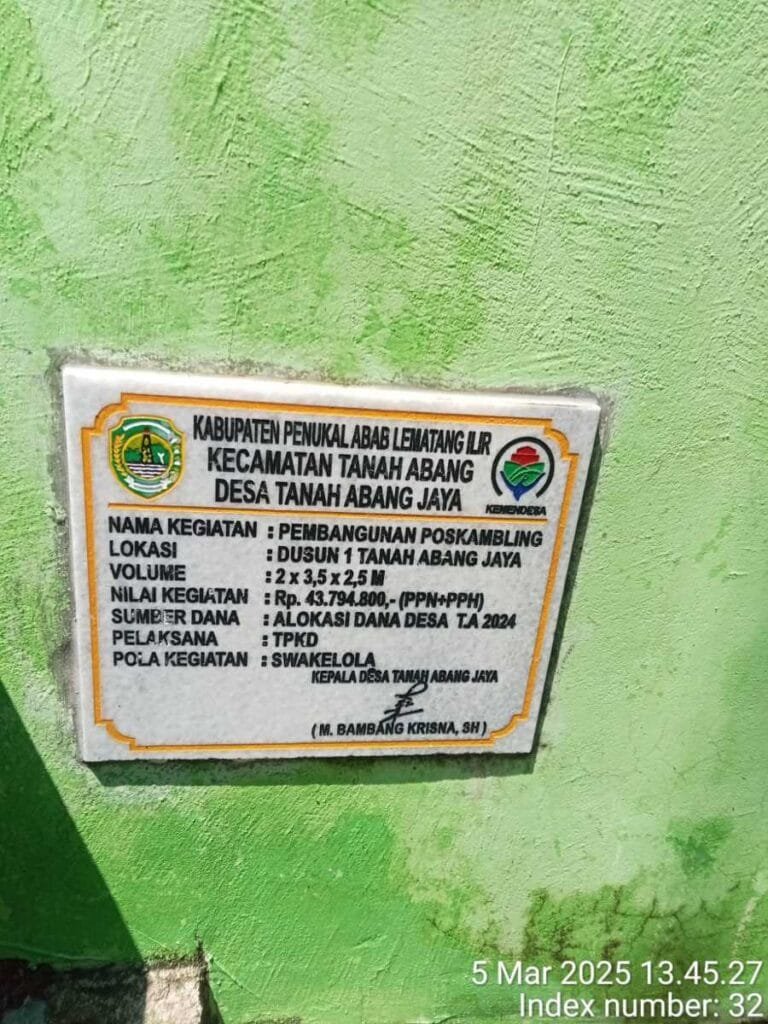 RADARCenter, PALI – Pembangunan Pos Kamling di Desa Tanah Abang Jaya menuai kontroversi. (5 Maret 2025)