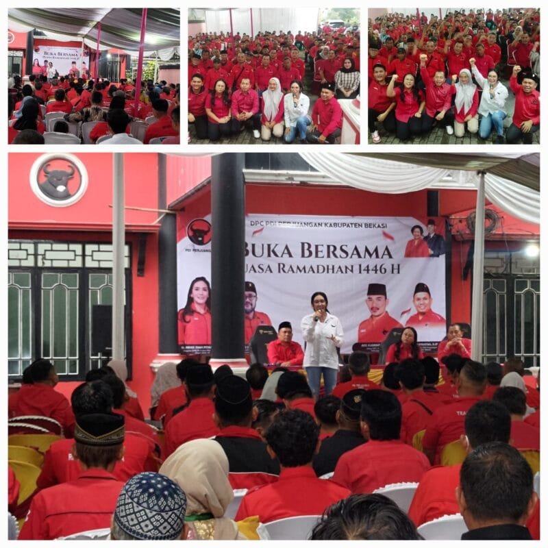 Acara ini juga dihadiri oleh Dewan Perwakilan Rakyat (DPR) RI Rieke Diah Pitaloka (RDP) dan Christin Novalia Simanjuntak anggota DPRD Provinsi Jawa Barat di Kantor DPC PDI Perjuangan Kabupaten Bekasi, Rabu (26/03/2025).