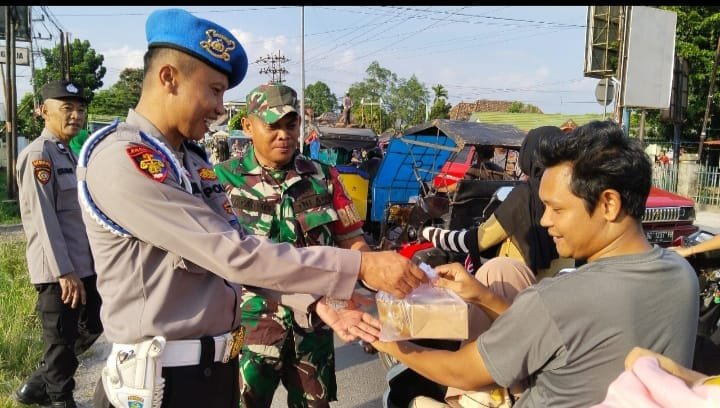 RADARCenter, OGAN ILIR– Dalam Rangka menyemarakkan bulan suci Ramadhan 1446 H,TNI Bersama POLRI Tanjung Raja kecamatan Tanjung Raja kabupaten Ogan Ilir Sumsel, mengelar kegiatan berbagi takjil kepada masyarakat. Kegiatan ini berlangsung pada Rabu (26/03/2025).