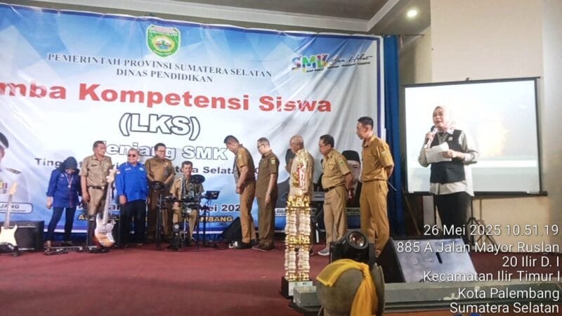 RADARcenter, Palembang – SMK Negeri 6 Palembang menjadi tuan rumah pelaksanaan Lomba Kompetensi Siswa (LKS) SMK se-Sumatera Selatan 2025 yang digelar mulai tanggal 26 hingga 28 Mei 2025. Acara ini dibuka secara resmi oleh Plh Kepala Dinas Pendidikan Provinsi Sumatera Selatan, Zulkarnain, SE., MM., dengan penabuhan drum sebagai simbol dimulainya kompetisi (26 Mei 2025).