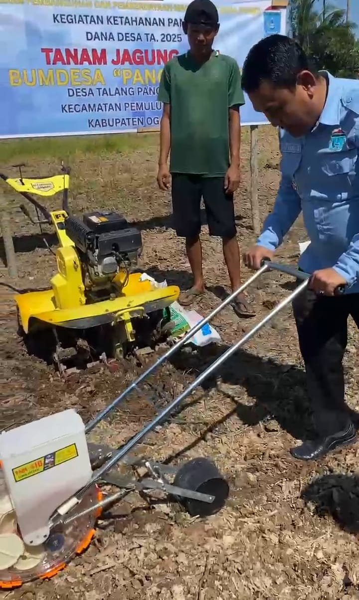 “Kegiatan ini sebagai wujud dukungan kami terhadap program yang sedang digalakkan pemerintah pusat, pada hari ini kami selaku Pemerintah Desa mengadakan giat menanam bibit jagung pipil, bibit jagung ini mempergunakan anggaran Dana Desa tahun 2025, dikelola oleh Bumdes bekerja sama dengan kelompok Tani Desa Talang Pangeran Ilir,” kata Fikri kepada awak media.