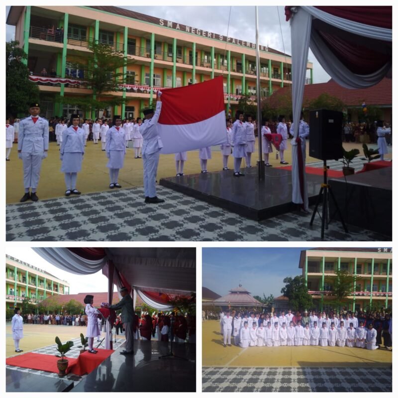 Pengawas SMA Disdik Provinsi Sumsel Syamsul Rizal, S. Pd,.M. Si, Komite SMA Negeri 9, para guru, tenaga kependidikan dan ratusan siswa-siswi turut ambil bagian dalam upacara pengibaran bendera Merah Putih yang menjadi puncak acara.