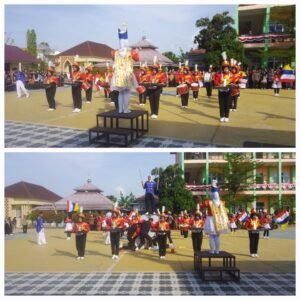Momen tersebut disambut dengan lantunan lagu “Indonesia Raya” oleh paduan suara dan Marching band GEMA ACAPELLA SMANBILPA, menciptakan suasana haru dan penuh kebanggaan.