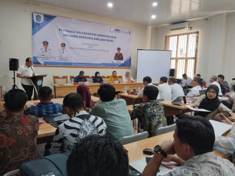 RADARcenter, Ogan Ilir — Sebanyak 15 desa di Kecamatan Pemulutan Selatan mengikuti Bimbingan Teknis (Bimtek) Sistem Keuangan Desa (Siskeudes) dan Jaga Desa tahun 2025 yang diselenggarakan oleh Dinas Pemberdayaan Masyarakat dan Desa (DPMD) Kabupaten Ogan Ilir.