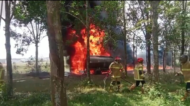 Ledakan Mobil Tangki BBM Diduga Ilegal Gegerkan Warga di Perbatasan Palembang–Banyuasin, Empat Orang Kabur Saat Kejadian