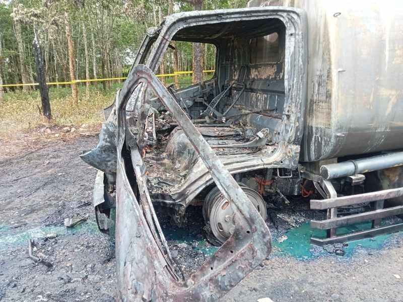 Sisa kendaraan tangki yang hangus terbakar turut diamankan untuk kepentingan penyelidikan.