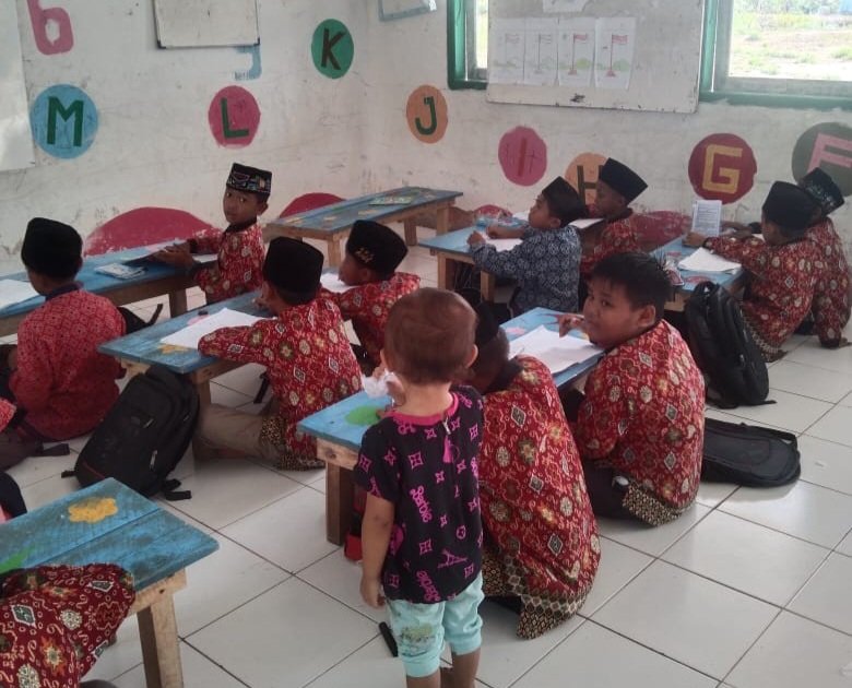 dilengkapi karpet, papan tulis kecil, serta jumlah mushaf Al-Qur’an dan buku Iqra’