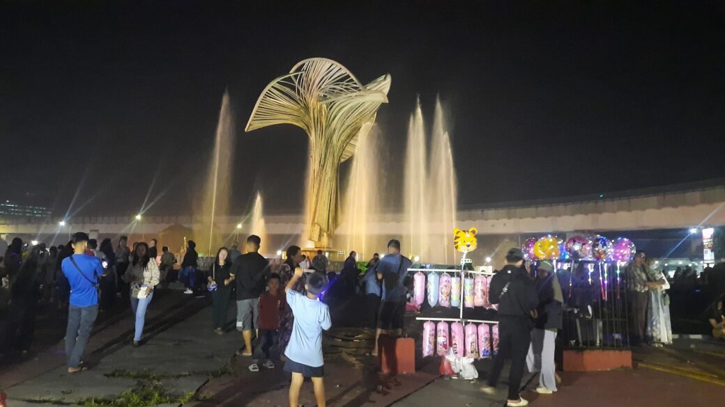 Foto: Suasana pengunjung diseputaran air mancur Jakabaring Palembang.