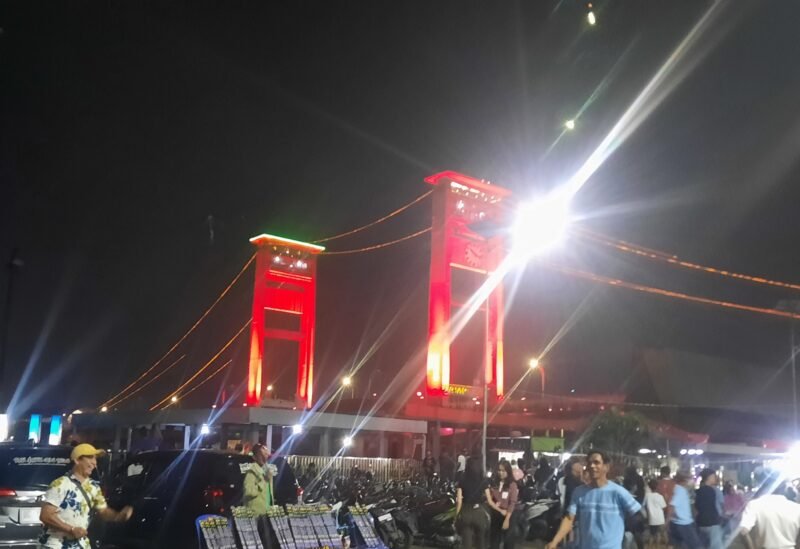 RADARCenter, Palembang– Antusias masyarakat padati jembatan Ampera menyambut malam pergantian tahun di Kota Palembang, pengamanan dijaga super ketat. Aparat Kepolisian berpakaian dinas lengkap terlihat jelas berjaga mulai dari pangkal jembatan, hingga disepanjang jembatan Ampera dan di seputaran masjid Agung.