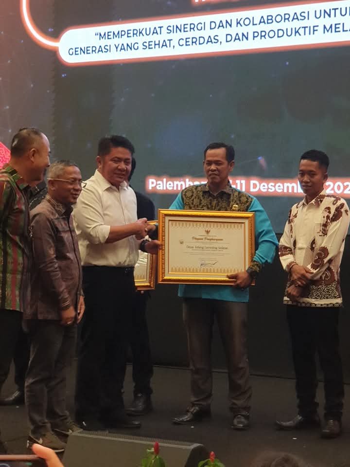 RADARCenter, Palembang– Pemerintah Desa Tebing Gerinting Selatan menerima penghargaan atas prestasi meraih Lomba Desa Cinta Statistik (Desa Cantik) tingkat propinsi Sumatera Selatan (Sumsel). Dalam program pembinaan Desa Cinta Statistik tahun 2025 .
