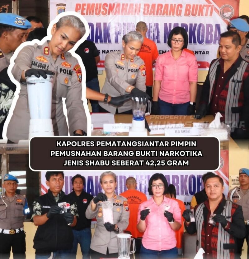 RADARcenter, Pematangsiantar – Kapolres Pematangsiantar AKBP Sah Udur T.M. Sitinjak SH. SIK. MH pimpin pemusnahan barang bukti narkotika jenis sabu Narkotika golongan I bukan tanaman atau disebut sabu berat netto 42,25 gram didepan ruangan Sat Resnarkoba, pada Jumat 5 Desember 2025 siang pikul :12.30 Wib.