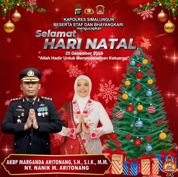 Kapolres Simalungun, AKBP Marganda Aritonang, saat dikonfirmasi Kamis (25/12/2025) sekitar pukul 13.00 WIB, menyampaikan harapan agar damai dan kasih Natal senantiasa mengisi hati seluruh masyarakat.