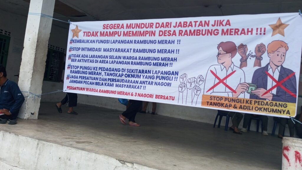 Warga kemudian menyampaikan sejumlah tuntutan, di antaranya meminta Pangulu Rambung Merah mundur dari jabatannya apabila dinilai tidak mampu memimpin, mengembalikan fungsi tanah lapang seperti semula, menghentikan dugaan intimidasi terhadap masyarakat, serta menghentikan praktik pungutan liar terhadap pedagang di sekitar area tanah lapang.