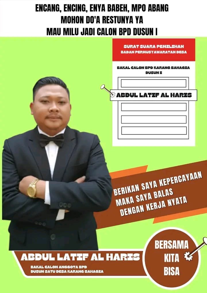 Dengan semangat pantang menyerah dan niat tulus mengabdi, Latif berharap langkahnya maju sebagai bakal calon BPD dapat menjadi awal perubahan positif bagi Desa Karang Bahagia.