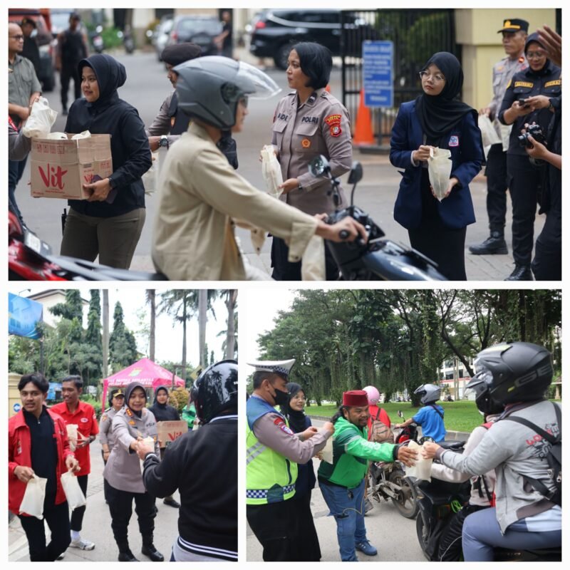 Kolaborasi Polres Metro Bekasi Bersama Ormas Dan Mahasiswa berbagi Takjil Di Bulan Suci Ramadan