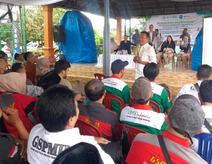 RADARCenter, KABUPATEN BEKASI – Pengabdian kepada masyarakat Kabupaten Bekasi, Anggota Komisi IX DPR RI Fraksi Partai Gerindra, Obon Tabroni bekerjasama dengan Poltekkes Kementrian Kesehatan (Kemenkes) Jakarta III mengadakan Sosialisasi Cegah Penyakit Sejak Dini dengan cara Cek Kesehatan Gratis dalam kegiatan Germas. Acara ini di Gelar di Sarana Olah Raga RT.02/11 Perumahan Telaga Harapan, Desa Kalijaya, Kecamatan Cikarang Barat, Kabupaten Bekasi, Jawa Barat. Pada Sabtu (28/02/2026).