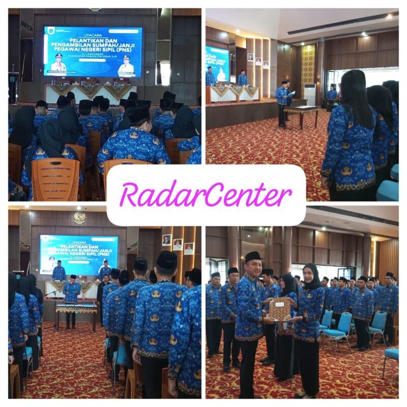 RADARCenter, OGAN ILIR– Pemerintah Kabupaten (Pemkab) Ogan Ilir menggelar upacara Pelantikan dan Pengambilan Sumpah/ Janji Pegawai Negeri Sipil (PNS) dilingkungan Pemkab Ogan Ilir, yang digelar di Pendopoan KPT Tanjung Senai, Kabupaten Ogan Ilir, Provinsi Sumsel. Senin (20/04/2026).
