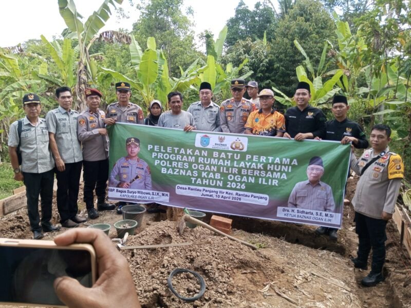 RADARCenter, Ogan Ilir– Pelerakan batu pertama program rumah layak huni Polres Ogan Ilir bersama Baznas Kabupaten Ogan Ilir tahun 2026, berlokasi di Dusun II Desa Rantau Panjang Ilir, Kecamatan Rantau Panjang, Kabupaten Ogan Ilir, Provinsi Sumsel. Jumat (10/04/2026)
